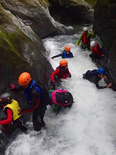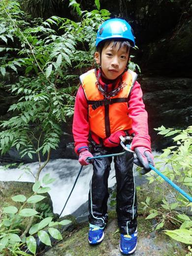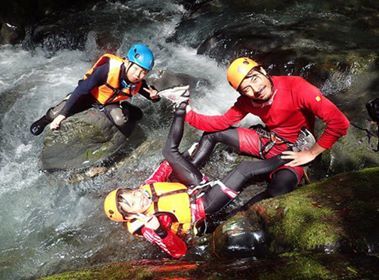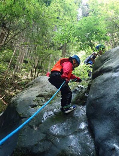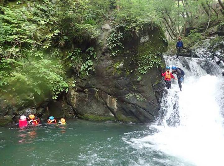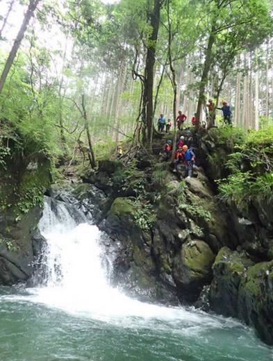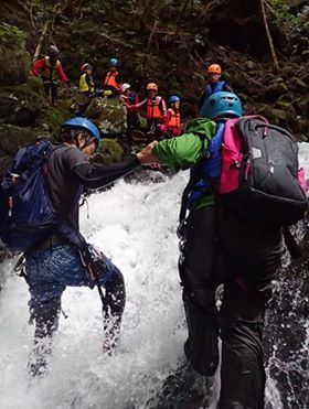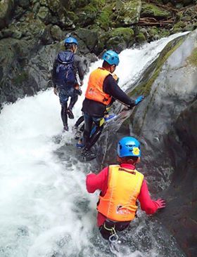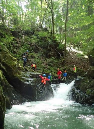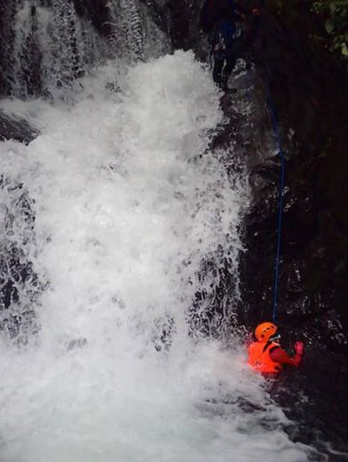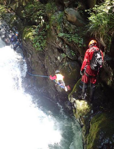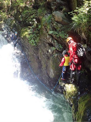 下二人、渦巻く滝壺へ一人で飛び込むのは
