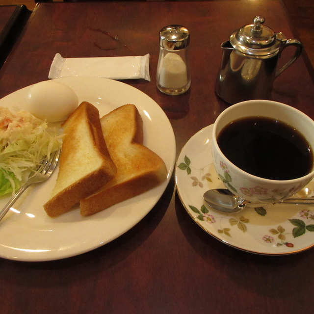 トーストモーニング360円、喫煙店。