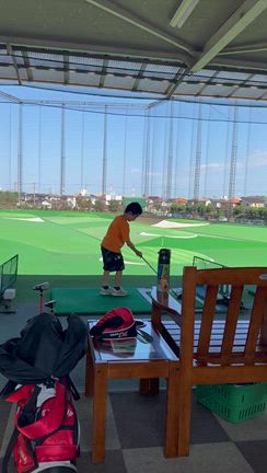 土曜日の午後も親子でゴルフっしょ、