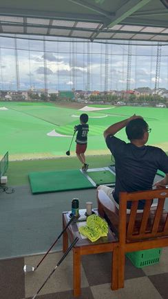 土曜の朝は、親子でゴルフっしょ。