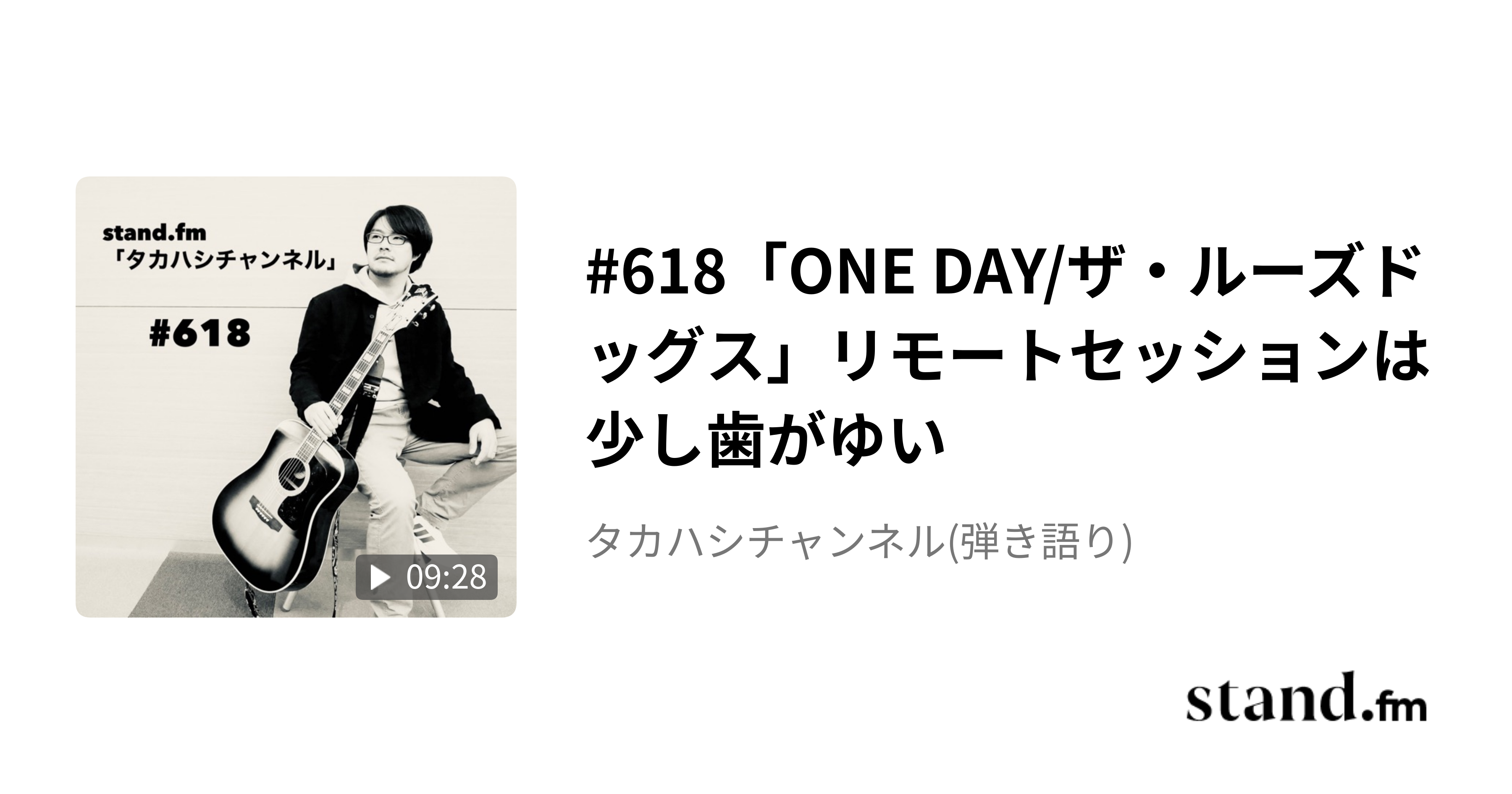 stand.fm #618#618「ONE DAY/ザ・ルーズドッグス」リモートセッションは少し歯がゆい - タカハシチャンネル(弾き語り) | stand.fmシンクルームを使ったセッションは楽しかったけど、早く会って音出したくなりました。 #弾き語り #歌ってみた #ONEDAY #ザ・ルーズドッグス #TheLooseDogsstand.fm
