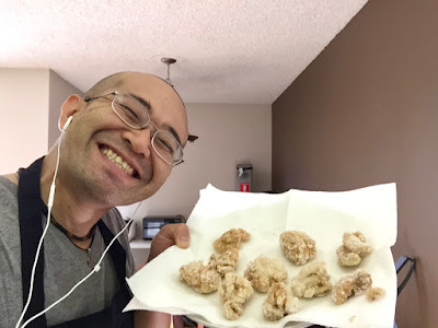 七面鳥って鶏肉よりもパサパサしてるんですが、唐揚げなら大丈夫!昨日から仕込んで、出来立てを食しました〜。見た目はいい感じ!そして気になるお味は…………ダメだコリャ‼️😆 一口食べて『味の構造改革や〜』とか言おうと思ってたのに、ダメやった〜。唐揚げって色々と難しいわ〜。敗因がいくらでも思い浮かぶわ〜。