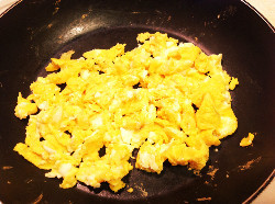 こしょう・砂糖...各小さじ1/2、味の素…小さじ1、炒められた卵を入れて、混ぜる。