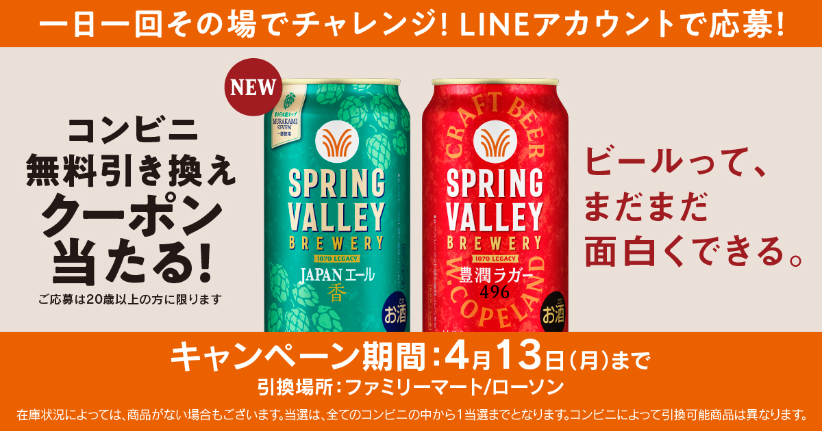 スプリングバレーが13万人に当たる4/13まで