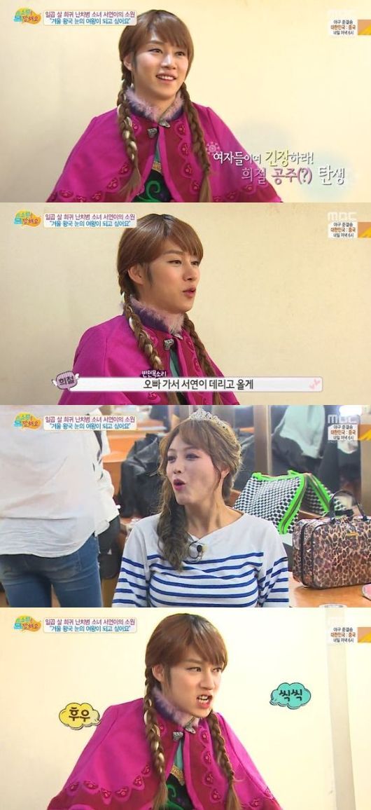 キム・ヒチョルは26日午後放送されたMBCパイロットのバラエティ番組'訴願を言います。'で難病少女ソヨンの願いを叶えるため、'アナと雪の女王'のアンナ扮装を披露した。