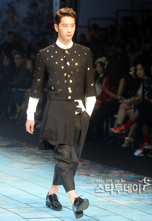 2PMチャンソン、'カリスマランウェイ'(福岡市英語韓国語教室) 19日午後、東大門(トンデムン)DDPで開かれた'2015S/Sソウルファッションウィーク'で2PMチャンソンがデザイナーの李相奉(イ・サンボン)衣装を披露している。