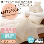 【日本製】体に優しい 洗える防ダニ布団 【amule】アミュレ 7点セット 洗える掛け布団・3層硬わた敷布団タイプ ジュニア アイボリー