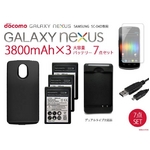 【GALAXY NEXUS】3800mAh大容量バッテリー×3&専用バックカバー&デュアル充電器7点セットSC-04D