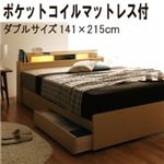照明・棚付き収納ベッド【All-one】オールワン【ポケットコイルマットレス付き】ダブル ホワイト(All-one cool)