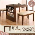 収納シェルフラック付 エクステンションテーブルベンチダイニングシリーズ【Miel】ミエル/3点セット(Aタイプ) カフェブラウン