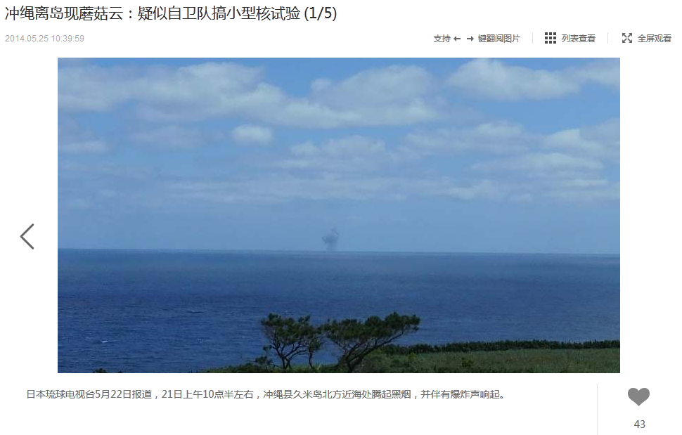 日本の沖縄の沖合いで巨大なキノコ雲が観測されました。