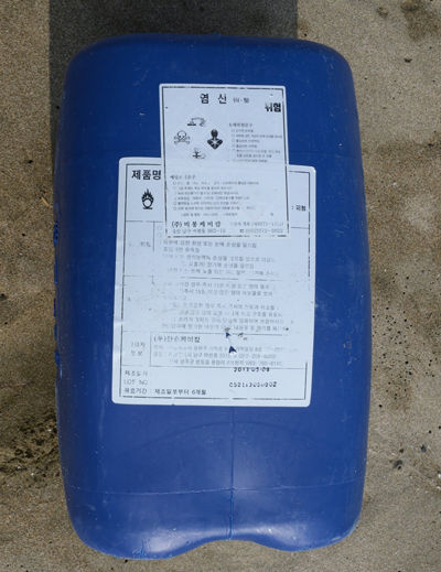 そして「たいていが韓国ノリの養殖で、網の消毒用に使われている。有毒なので韓国当局も使用を禁じているはずだが、ご覧のようなありさま。