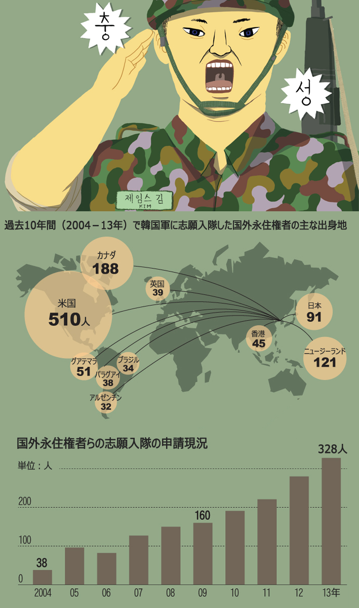 また、政府の努力も一役買っている。兵務庁は、国外永住権者などの入隊を奨励するために、2004年から「永住権者などの入隊