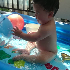 初めてのプールで水浴び