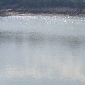 いい天気で、池がキラキラ