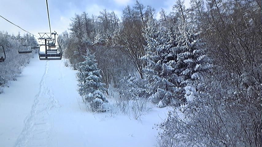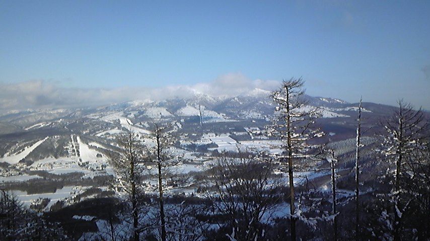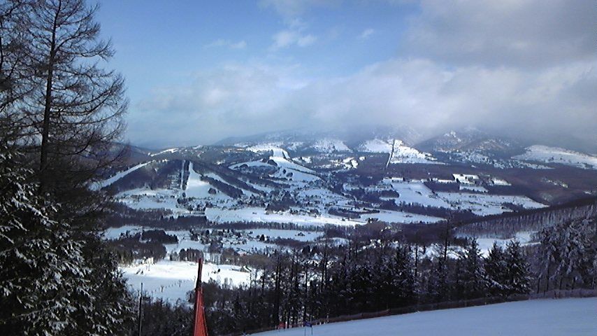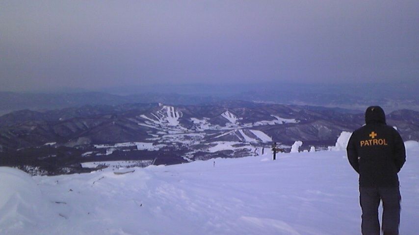 だったけど、山頂のコースは比較的いい雪質![]()