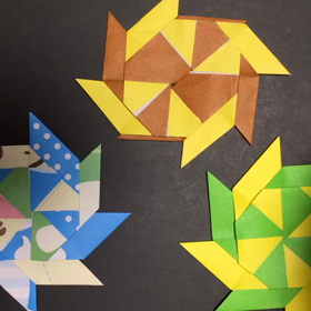 ☆ 折り紙で ドーナツ形から手裏剣 の作り方 ☆