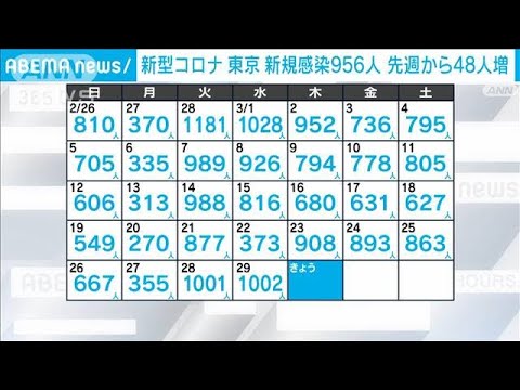 東京新規感染956人 8日連続で前週同曜日上回る 専門家「感染者数の跳ね上がりに驚き」(2023年3月30日)東京都で30日に確認された新型コロナウイルスの新たな感染者は956人でした。前の木曜日より48人増えました。8日連続で前の週の同じ曜日を上回りました。 東京都によりますと、直近1週間の感染者の平均は820人で、前の週と比べて135.5%となりました。 入院しているのは473人で、このうち重症者は5人です。 病床使...youtu.be