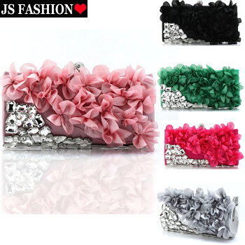 【5色展開】フラワー満開・キラキラビジュー施しパーティーバッグ【パーティードレスに合わせて・結...