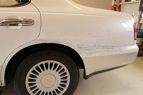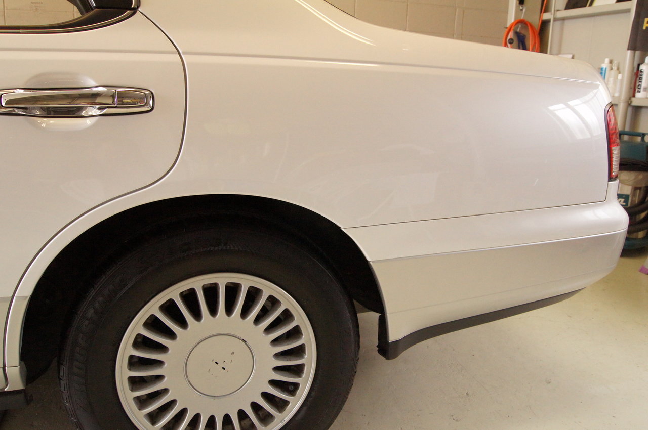 皆さん注目~☆毎度CP-STYLEさっちゃんです♪今回は多くの方に知ってもらいたい!!『【磨いて取れる種類のキズ】に市販のスプレーしないで!』と!塗料でフタしたらあきまへん!! 絶対キレイになれへんし!!←岸和田弁使ってみたww今回、【施工前の画像】は撮影出来てませんが、見事にスプレーされたセドリックが入庫しました。左リアフェンダーからバンパーにかけて広範囲にスプレーが(;゚Д゚)!しかも市販品、パール塗装でもあって全然色目が合ってなくて汚いし(;゚Д゚)!こちらは【施工後の画像】に加工して作った合成画像ですが、上記の広範囲に中途半端に塗られたスプレー塗料・・・(-_-;)下にある茶色いキズが隠し切れておらず、透けて見えている状態。透けて見えてるキズを一目見て判断!!『これは塗装面を侵していない、表面に付いているだけのキズ』だと。すなわち・・・ぶつけた相手(モノ)の塗装や成分がこびり付いてるだけ。その下にはまだ、普通にキレイな塗装膜が残っているんです!まずは、弱い溶剤でラッカースプレー塗料を拭き取ります。やっと出てきました!塗料でフタされていた【茶色いキズ達】です!コンパウンドとポリッシャーで磨いてみると一瞬で除去。こんなにキレイになりました納車時、『ここ鈑金してくれたの?!』ってお客様そりゃ、ここまで何も無くなってりゃ言いますわ(画像をクリックして拡大画像でご確認下さい。)皆さん!これだけは知っておいてください!例えば【駐車場にある黄色いポール】にぶつけた時、ボディーに付いてる【黄色いキズ】はキズではありません!!例えば長さ30cmの黄色いキズが付いたとしても、ガリガリっと塗装膜を引っ掻いているのは30cm中、たった2cmだけだったりするんです!!すなわち・・・磨いてみたら30cmの黄色いキズが表面に付いているポール側の黄色い塗料を除去することでたった2cmの小さな目立たないキズに戻せます!!スプレーするならその【2cmのキズ】にしてあげて!!30cmスプレーしてもキレイになんてなりませんから・・残念!←懐かしのはたようくさん風に♪部分磨きなら¥3000~¥5000位で対応しております。鈑金修理を依頼すると・・・約10倍の料金が(T▽T)まずは、【磨いて取れるキズかどうか】の判断を当店で!!板金行く前にまず、磨きでとれるのか当店で確認さして下さい(*^_^*)磨きでとれるならお財布にも優しいですしねっ♪それでわ、また明日☆