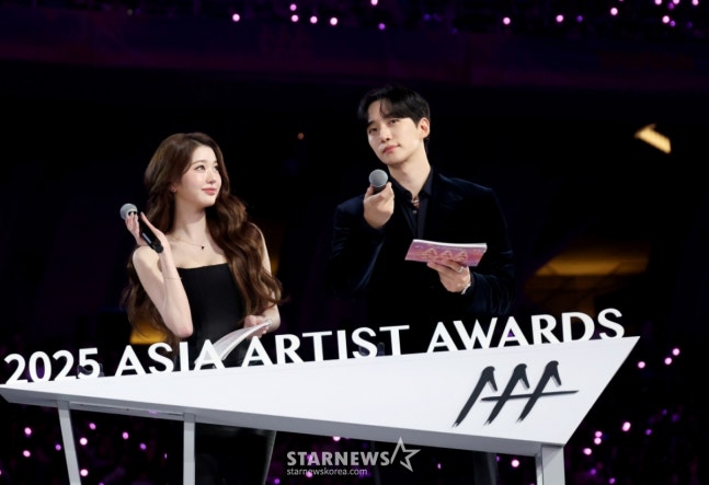 司会を努めたチャン・ウォニョンとイ・ジュノが6日、台湾高雄ナショナルスタジアムで行われたスターニュース主催「10周年アジアアーティストアワード2025(10th Anniversary Asia Artist Awards 2025、「10周年AAA 2025」で素敵なケミを披露し、授賞式をリードしている。
