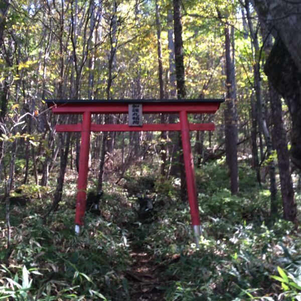 2枚目画像の窪んだ所で、2方向に分かれていて、烏帽子への山道入り口には