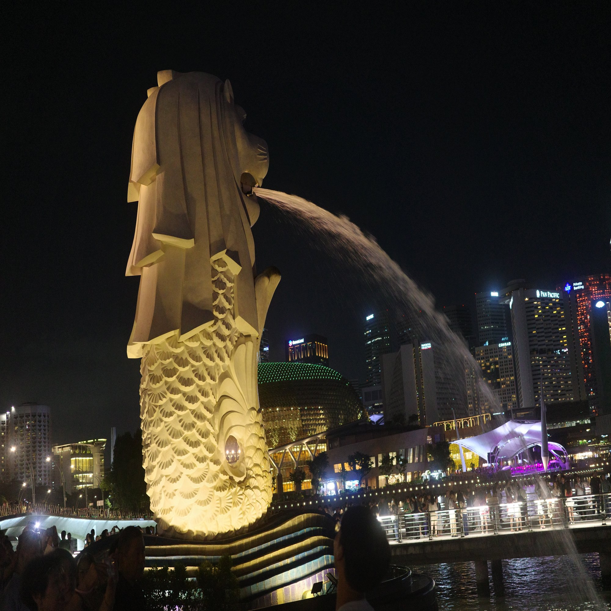 夜風が心地いい。 マーライオン公園へ辿り着くと、対岸には光り輝くマリーナ・ベイ・サンズが鎮座していた。その夜景のあまりの美しさに、しばし言葉を失う。