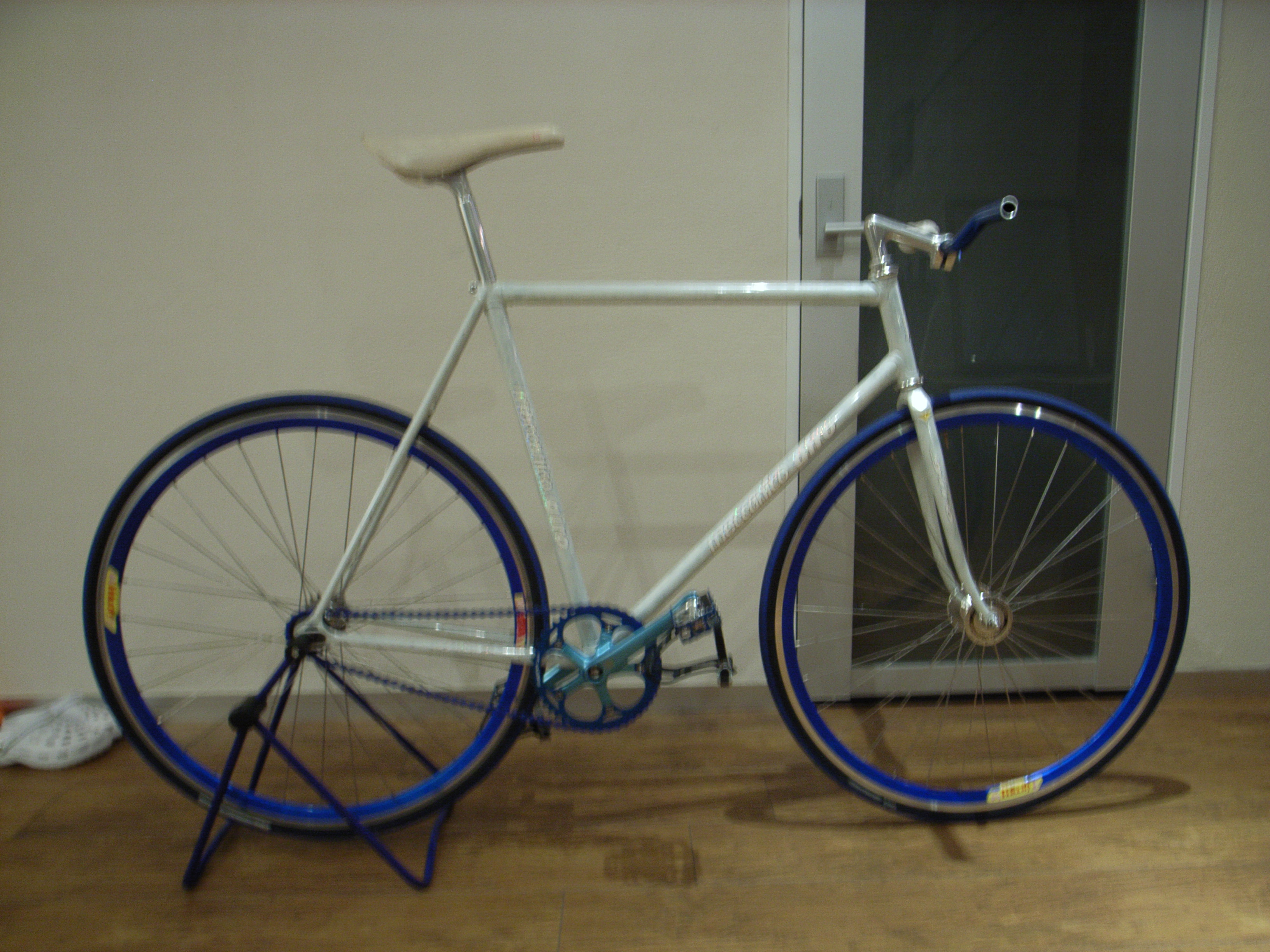 しまったピスト。今見てもこの自転車はカッコいいと思う。レインボーラメ