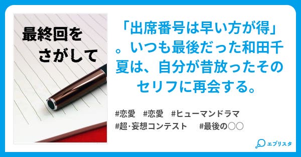 最終回をさがして 「最後の○○」がお題の短編です。11分で読めます。