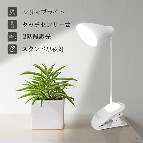 クリップライト LED ブックライト NAGOTOWN デスクライト&ボトムライト 1台2役 電気スタンド USB充電式 タッチLEDライト 3段階調光調色 360度回転 目に優しい 卓上/ベ読書/勉強/仕事/寝室/撮影/メイク用Amazon(アマゾン)1,999円