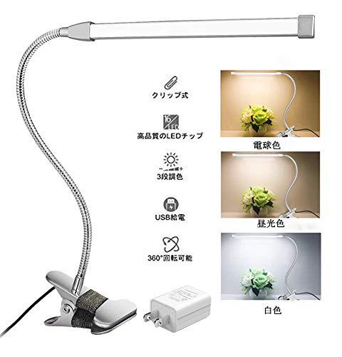 クリップライト led デスクライト 日本語取扱説明書 3段調色(暖色/昼光色/白色) 10段調光 USB式 8W 700lm 80個LED 360°回転 レキシブルアーム 長寿命50000時間 省エネ 明るい 目に優しい 卓上ライト 読書灯 デスクスタンド テーブルライト ナイトライト (銀色)Amazon(アマゾン)1,999円