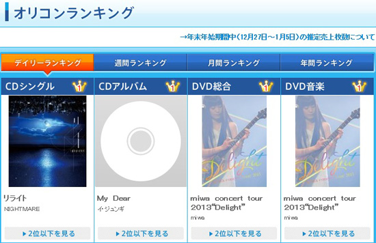 1月9日付けのオリコンデイリーランキングで見事1位を獲得しました!