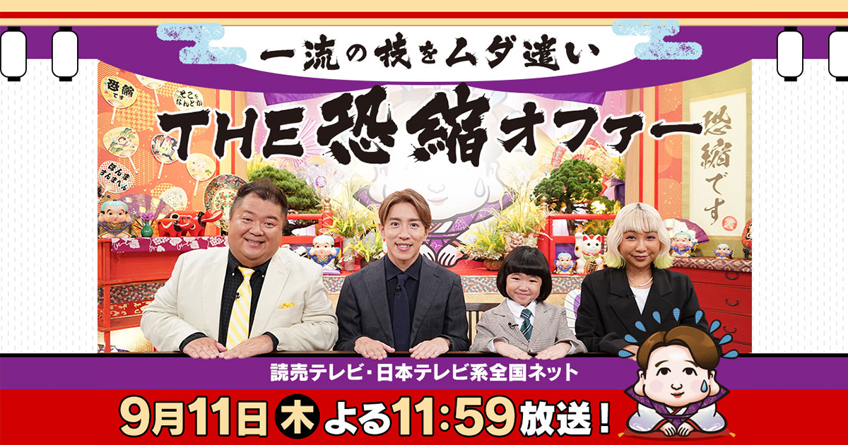 一流の技をムダ遣い THE恐縮オファー |読売テレビ世の中にあふれる些細な悩み…プロが本気で取り組むと、一体どうなる!?恐縮検証バラエティー!『一流の技をムダ遣い THE恐縮オファー』9/11(木)よる11:59~0:54放送!www.ytv.co.jp
