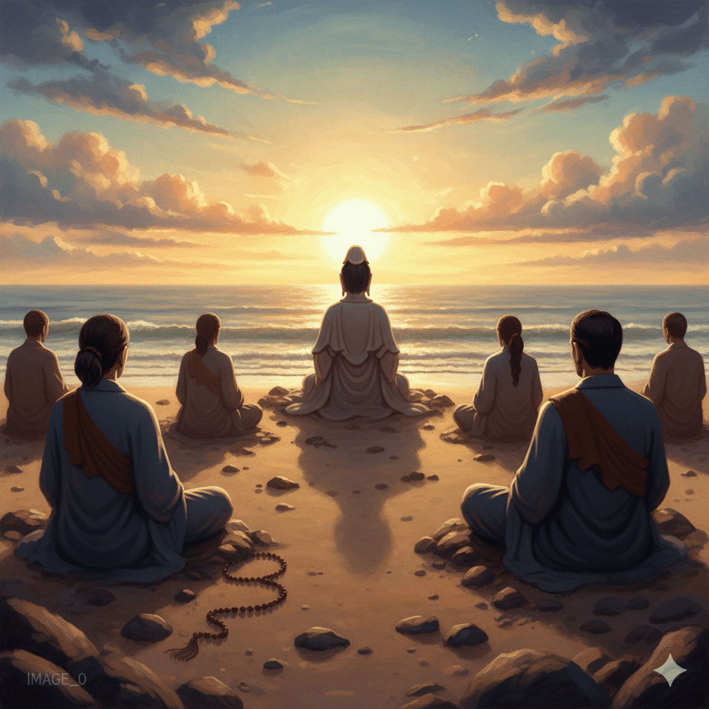 そしてある日、観自在菩薩さまは、穏やかに寄せては返す波の音が聞こえる砂浜に修行中の皆をあつめ、私にこう言ったのです。