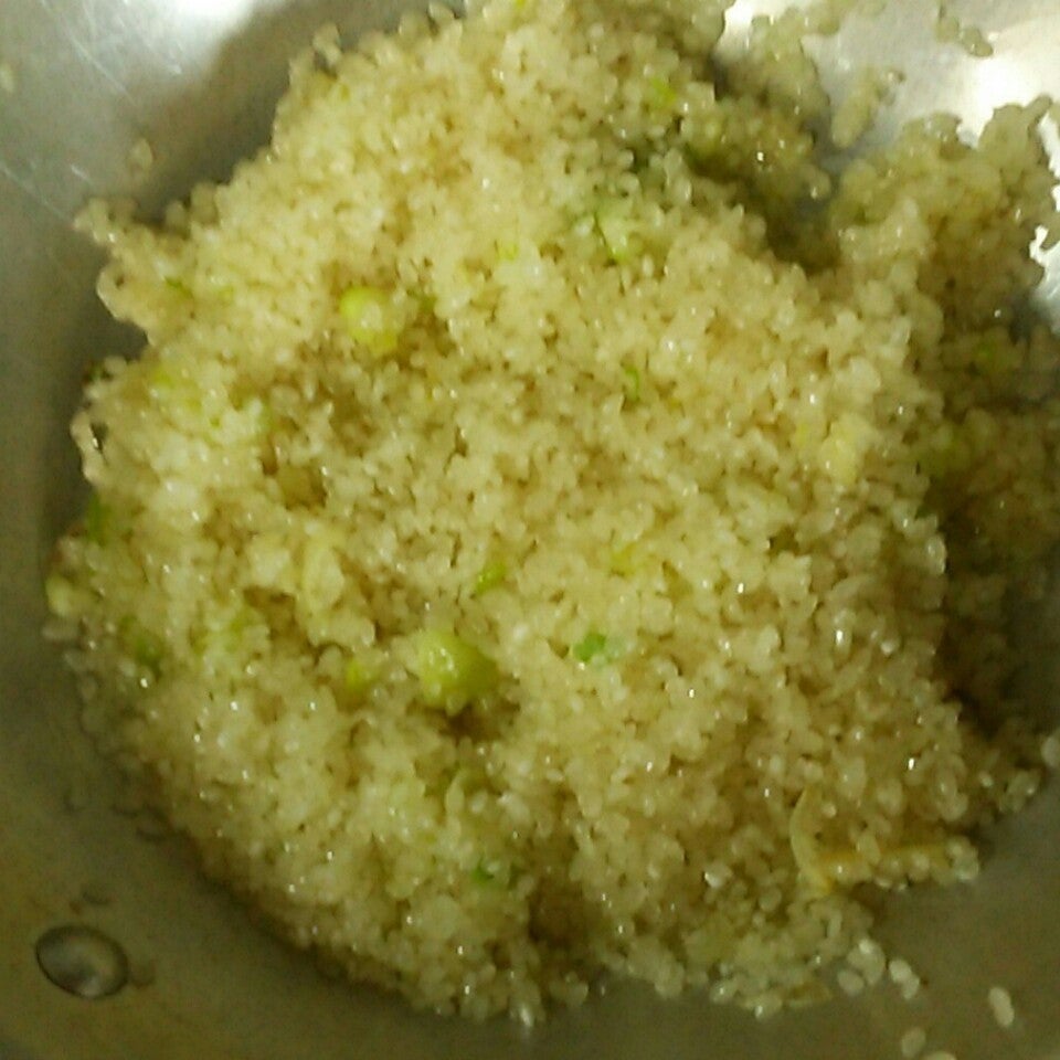 しんなりしてきたら、すぐに米を投入
