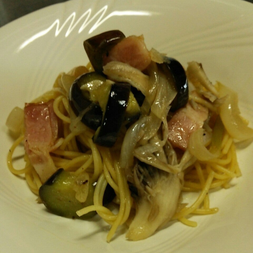(o^-')bナスとベーコンの和風スパゲッティー♪