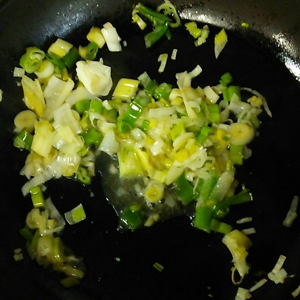 ネギは、ソテーしているうちに形が崩れますので、粗みじん切りくらいで大丈夫です