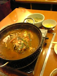 お友達プランで、四ッ谷の韓国伝統料理店に。辛すぎたらどうしょうかと思ったけど美味しくて野菜も取れて暖まる。鱈の入った鍋で おじやに。顔は真っ赤になりました(苦笑)ほぼ一年ぶりに会って。元気にハマってて情熱を感じました。韓国語のLessonも受けるとか。偉い!CDのダビングを頂いちゃいました。次は韓国語(笑)?私は何ヶ国語渡り歩いたんだよっ(爆)