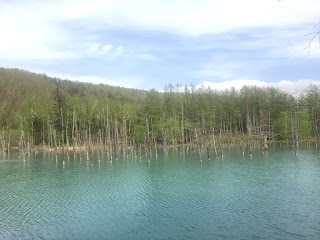 動物を見終わった後、次の旅程は美瑛青池と白須滝に分かれる。ガイドによると、青池の色は温度によって随時変化し、今回Yuが行ったときに現れたのは緑寄りの青緑色。池全体のサイズは大きくなく、大体10分あれば回り終えることが出来る。白須滝は、冬の雪のある時に行って見るほうが目を奪う艶やかさのはずだ。さもなくば普通の滝である(笑)しかし山上の空気はとてもきれいで、散歩して遠くの山々見てリラックスしたということに出来る(笑)(全体的に好き勝手な紹介だけど、雪景色があればさらに感動したかもしれないなと思う)