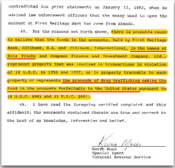 マネー・ロンダリングの捜査に危機感を覚えたのか、ティヌブはアメリカを離れてナイジェリアに戻り、政治の世界へ入る。1992年に上院議員に当選、99年から2007年まではラゴス州知事、そして今年5月から大統領を務めている。その間、アメリカ政府に情報を提供し続けた。
