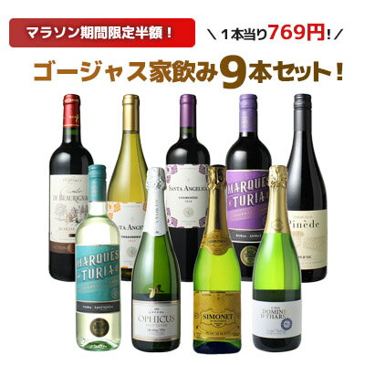 【お買い物マラソン限定半額】【送料無料】 ワインセット 飲み比べ ボルドーもカヴァも入ったゴージャス家飲み9本セット 赤ワイン 白ワイン スパークリング 全部入り お家で毎日ワイン三昧 ソムリエ厳選 ワイン wine プレゼント ギフト 第60弾楽天市場${EVENT_LABEL_01_TEXT}