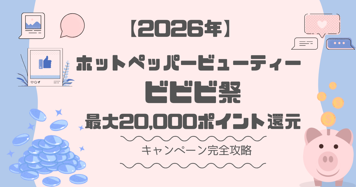 【2026年最新】ホットペッパービューティー「ビビビ祭」最大20,000ポイント還元!完全攻略ガイド2026年開催ホットペッパービューティー「ビビビ祭」最新情報まとめ。最大50%還元・上限20,000ポイントの条件、対象期間、予約方法、失敗しない攻略法をわかりやすく解説。k-tammm.com