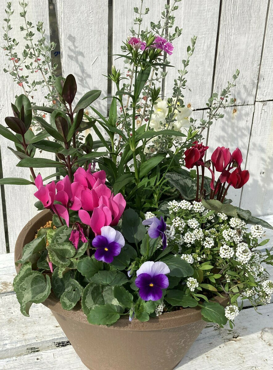 ガーデンミニシクラメン年末に購入したガーデンミニシクラメンが まだ元気に育ってる(快挙) 何年前か覚えてないほどですが 購入したときには 水をちゃんとあげてたのに 枯れてしまって 植物を育てるのは 向いてないのだなと感じた きっと水のやりすぎだったんだろうな。 日々チェックだけして 触らず放置。 花の茎がくたってなってから 水やりすると 元気に元の姿に戻る。 シクラメンが強いのか? 私の放任が上手くいっているのか? どちらにせよ 嬉しい バラ模様のブリキ鉢の寄せ植え 楽天市場 ${EVENT_LABEL_01_TEXT} 【送料無料※北海道と沖縄は除く】コニファー・ガーデンシクラメン・ビオラの存在感ある寄せ植え「クリスマス特別バージョン」【フラワーアレンジメント 花 冬向き 軒下玄関 お歳暮 お祝い プレゼント 耐寒性〇 当店オリジナル 管理説明書付 ボリューム感◎】 楽天市場 ${EVENT_LABEL_01_TEXT} 【寄せ植え】 ガーデンシクラメン 送料無料 寄贈品 特価 当店オススメ 楽天市場 ${EVENT_LABEL_01_TEXT}