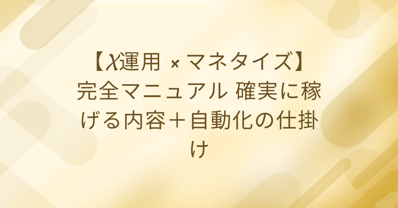 このマニュアルは、「X(旧Twitter)を使って“ゼロからでも確実に”お金を稼ぐ」ことを目的に作られています💰✨