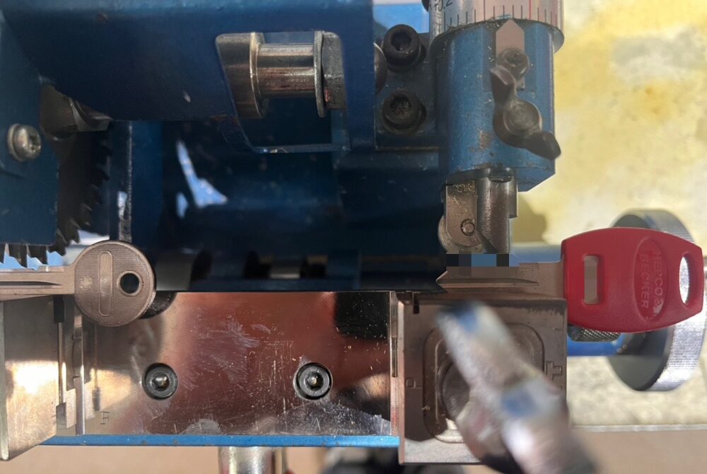 その後、合鍵マシンでブランクキーを加工します。
