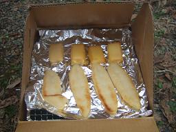 今回の目的は、「オートキャンプ初心者家族にキャンプの楽しさを伝える」ということで完全なる飽食キャンプとなりました。何せこれだけの料理を大人4人、子供2人で平らげたんですから(^^ゞっというか写真に写ってない分もありますからその量は半端じゃないですね。昼間からかなりの量のアルコールを飲みましたね。二日間とも天気も最高で、風もほぼ無風。天候も最高の状態でした。子供たちも芋掘り、枝豆の収穫体験、遊具での遊び、お向かいさんキャンパーの子供たちとの楽しい遊びや花火、大人はアルコールのほかにも露天風呂、焚き火、とりとめもないまったりトーク、木々に囲まれた森林浴と本当にキャンプを満喫した二日間でした。これで、ちょくちょく一緒にキャンプに行ってくれるとうれしいですね。さらなる職場でのキャンプ仲間の勧誘がんばりたいと思います(^^)詳細につきましてはホームページに掲載する予定ですのでしばらくお待ちください。