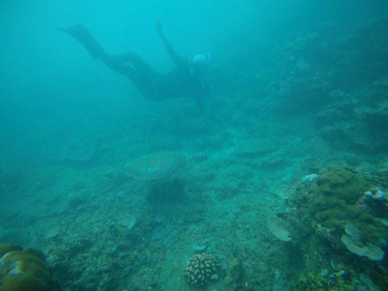 一人シュノーケルをして