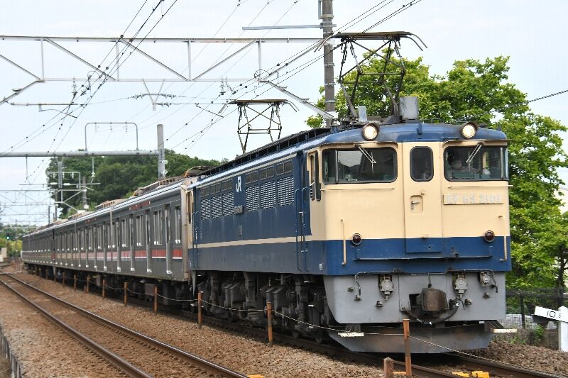 5/25 米タン&東急3000系甲種本日は午後に東急甲種があるので、米タンと共に撮影 しようと南武線の谷保-矢川に出向きました。 8079レの米タンが1枚目で釜はEF65-2063更新色。 ジェット燃料満載で拝島に向かって行きました。 同じ場所に留まり、次は東急3000系甲種を撮ったのが 2枚目で釜はEF65-2101号機+東急6Bです。 本日はPF2本で塗色違いが撮れました。