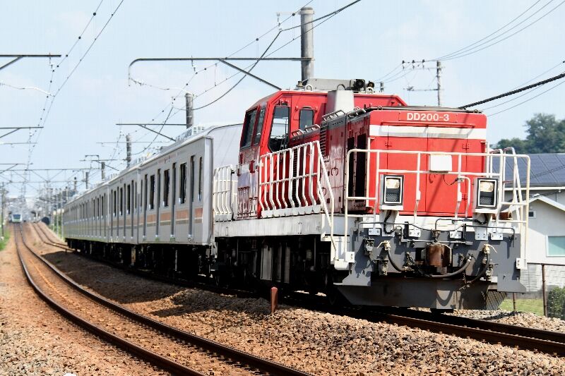 9/15 東急甲種輸送(横浜線DD200)本日は横浜線で東急甲種輸送が行われましたので E217系廃車回送と共に参戦。まずは東急甲種編。 片倉-八王子みなみ野で東急3000系中間車6Bを 撮ったのが1枚目、釜は愛知のDD200-3+3000系。 東急甲種のDD200牽引は初撮影かも? 3000系中間車の部分が2枚目。 東急甲種の後追いが3枚目です。 この後は撤収して次のE217系廃車回送に向かいましたが 続きは次の日記にて!