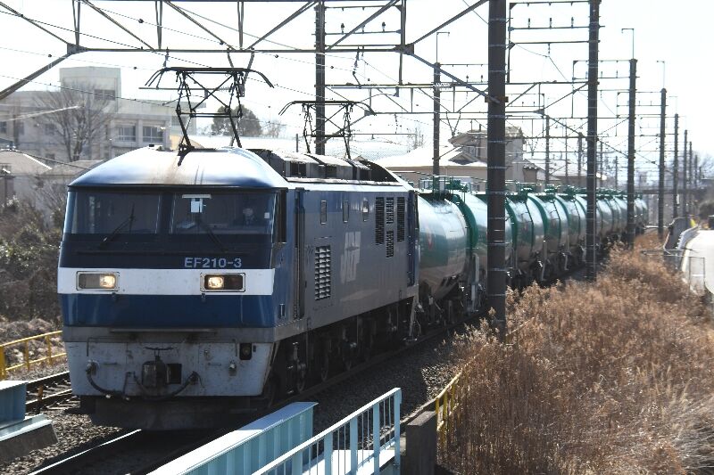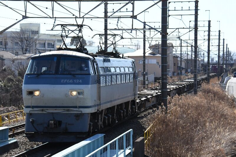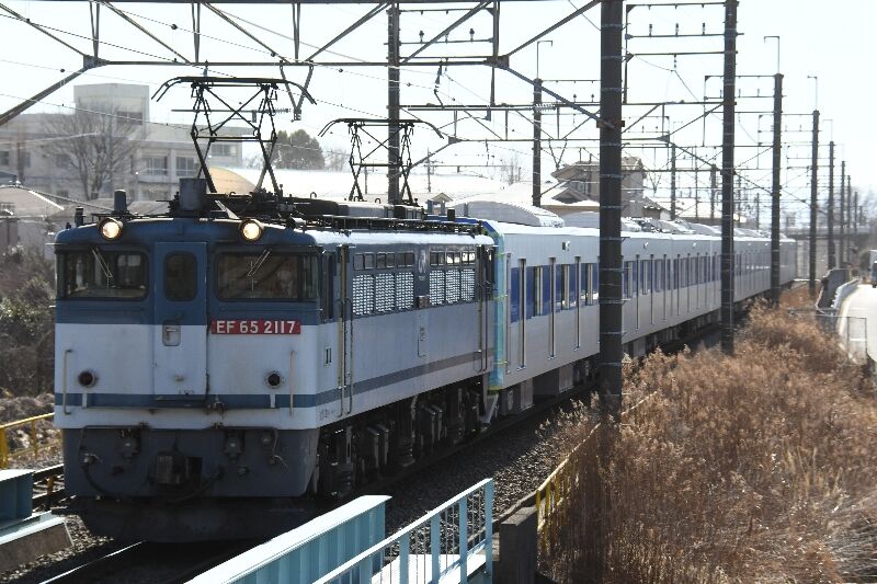 2/27 都営三田線 6500形甲種輸送カシオペア紀行撮影後は、途中で都営三田線の 甲種輸送を撮影してから帰還します。 時間調整をファミレスランチで行ってから新秋津-東所沢 のポイントに向かいます。 逆光の中、撮影した都営三田線6500形甲種輸送が1枚目。 釜はEF65-2117(更新色)+都営6500形。 何とか後追いしたのが2枚目の6509編成、もう9編成目ですが、 昼間に地元近くを通過するのは有り難い。 待ち時間の釜も載せますと2099レのEF66-124号機が3枚目。 4091レが4枚目でEF210-3号機桃太郎。 2080レが5枚目でEH200-3号機ブルサンで、偶然にも桃太郎と ブルサンの3号機が連続で登場しました。
